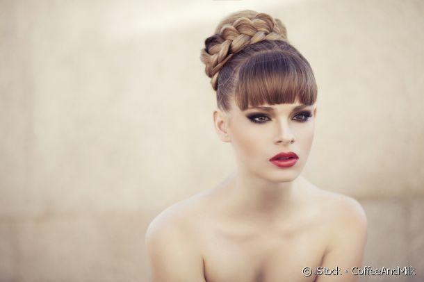 Le bun haut perché se la joue audacieux en version XL. Il prend des airs de fête grâce à une jolie tresse qui met en valeur vos longueurs. Pour réussir cette coiffure, ramenez vos cheveux vers l’arrière en plaquant bien vos mèches. Si vous avez une frange, portez-la légèrement bombée pour habiller le front. Attachez votre chevelure en une queue-de-cheval haute. Séparez-la en deux sections égales de cheveux, puis insérez l’une d’elles dans un bun en mousse et faites revenir vos longueurs dessus pour recouvrir l’accessoire. Il donne du volume et sert de base à la coiffure. Camouflez vos pointes en les fixant à la base du bun avec des épingles. Puis, réaliser une tresse simple à trois brins avec la section restante. Desserrez ensuite un peu les branches pour donner de l’ampleur à la tresse et enroulez la natte à la base du bun pour le décorer. Fixez simplement avec des épingles plates : vous voilà fin prête !