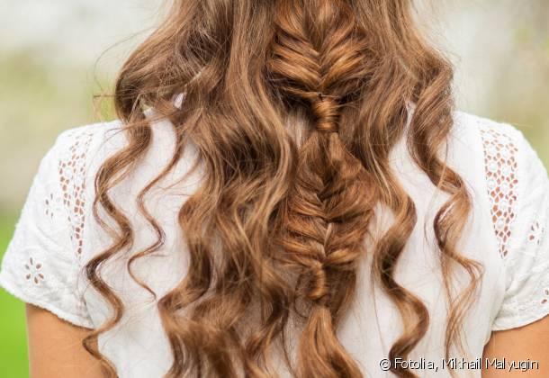La demi-queue est créée, il est temps de l’habiller ! Poursuivez la coiffure en réisant une tresse épi. Mais au lieu de nouer vos mèches jusqu’aux pointes, arrêtez-vous au bout de quelques tressages (une dizaine de centimètres). Cela permet de sophistiquer vos longueurs tout en accentuant le côté flou, presque décoiffé. Attachez le tout avec un élastique et camouflez-le en enroulant une mèche, comme précédemment. Si vous avez les cheveux longs, vous pouvez même doubler cette étape.