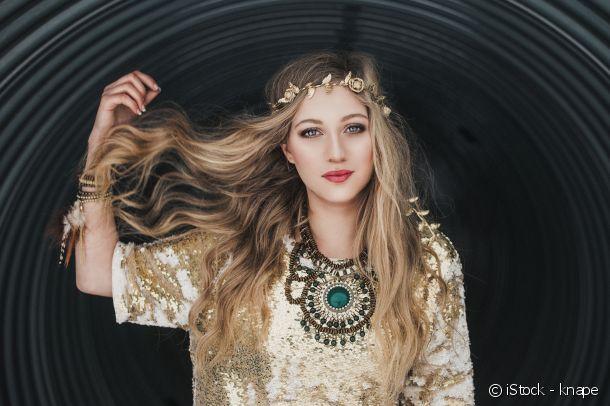 Estivales à souhait, les longueurs wavy se mettent à l’heure bohème grâce au headband, un accessoire emblématique du look hippie. Pour réussir cette coiffure, il suffit de travailler vos longueurs au fer à boucler afin de créer des ondulations wavy. Parfaites pour mettre en valeur les chevelures XXL. Ici, l’accessoire façon bijou sublime la coiffure grâce au headband à fleurs dorées à la fois sobre et chic. Variez les coiffages en choisissant votre fantaisie préférée : fleurs, plumes, perles ou un mix & match pour une allure irrésistible.